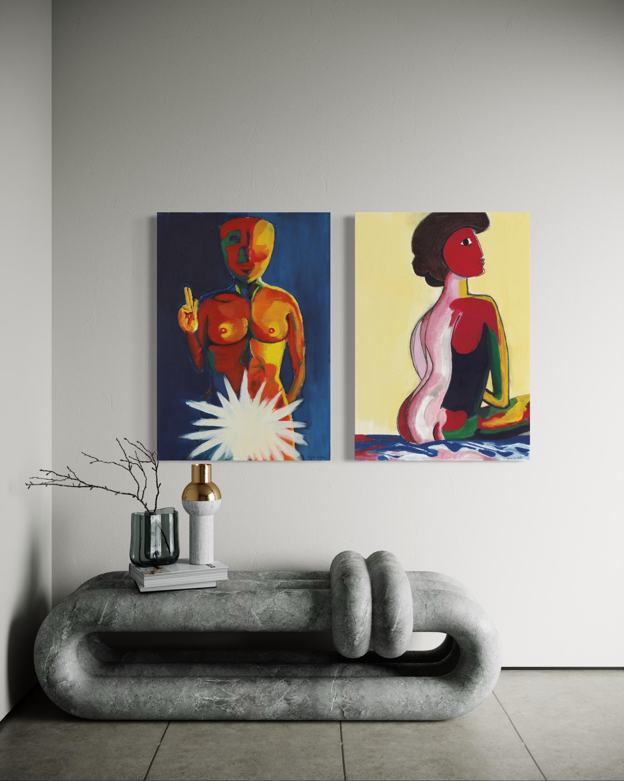 Artiste autodidacte, chaque geste est guidé par une impulsion instinctive. Mon univers est peuplé de couleurs vibrantes, de contrastes audacieux et de formes expressives qui réinterprètent la figure humaine.